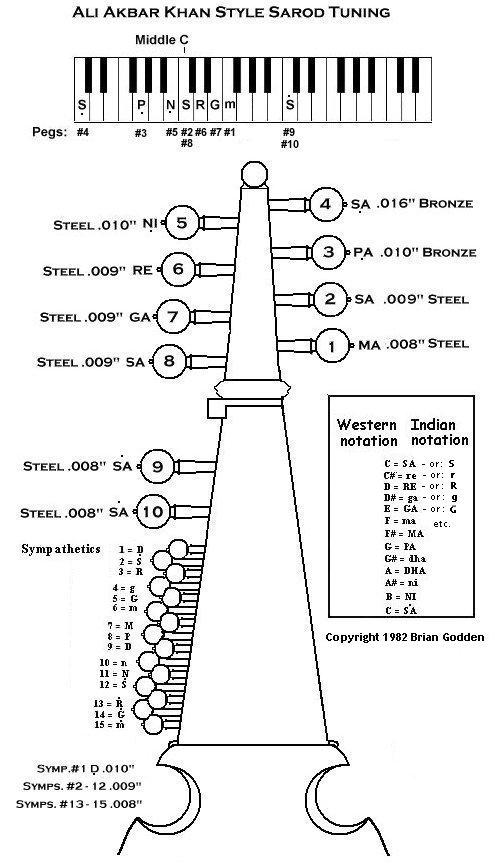 Heutzutage sind zwei verschiedene Formen von Sarods verbreitet, die sich leicht in Bau und Besaitung unterscheiden. Sarods im Maihar Stil wurden von Ali Akbar Khan und seinen Schülern bekannt gemacht. Sie haben 25 Saiten - 4 Melodie-, 4 Bordun-, 2 Rhythmus- und 15 Resonanzsaiten. Alle Saods in unserem regulären Sortiment sind im Maihar Stil.