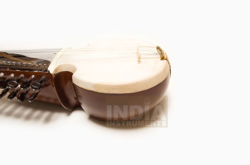 Korpus, Hals und Wirbelkasten aus Tun- oder Teakholz gehen ineinander über. Manchmal sind sie aus einem Stück gearbeitet. Solche Instrumente nennt man One-Piece Sarod. Verbreiteter ist eine Konstruktion, bei der der Wirbelkasten an den Hals angesetzt wird - die sogenannte Two-Piece Sarod. Die Meinungen gehen auseinander ob One-Piece oder Two-Piece Sarods besser seien. Der Unterschied ist von außen praktisch nicht mehr zu erkennen, nachdem das Holz gefärbt und lackiert ist. Da Herstellerangaben nicht immer verlässlich sind und wir keine unsicheren Behauptungen über unsere Instrumente aufstellen möchten, verzichten wir auf eine Unterscheidung zwischen diesen beiden Arten der Konstruktion.