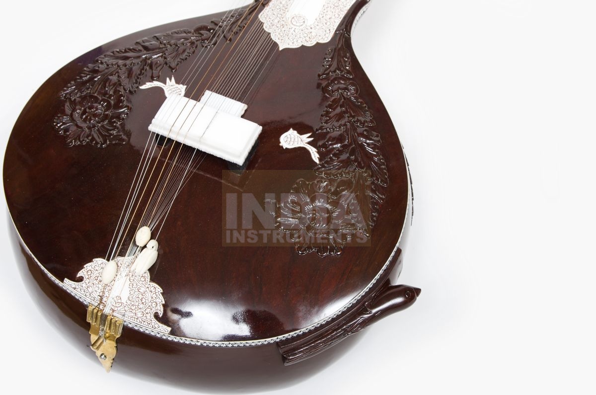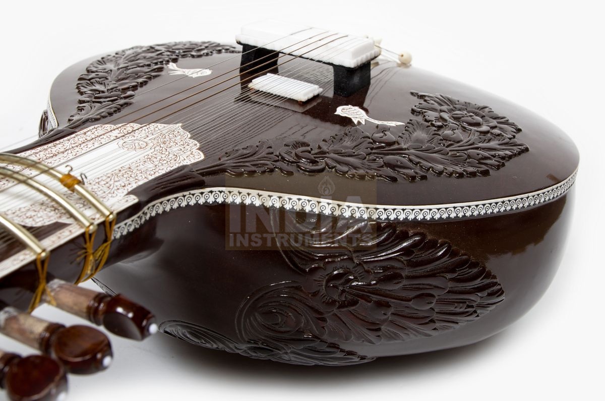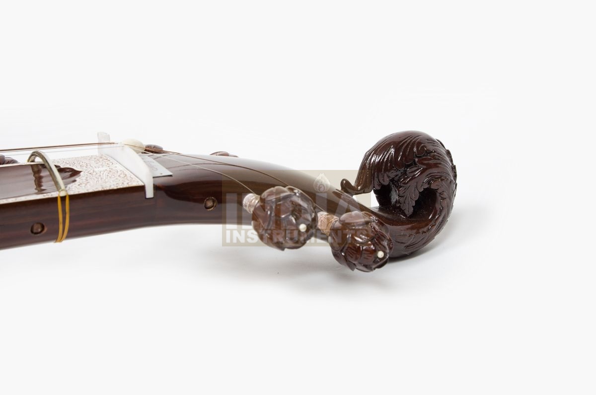 Eine edle Surbahar für professionelle Ansprüche im Stil von Hiren Roy: kompakt in den Abmessungen, geschlossene Decke, ausgewogen, dynamisch und klar im Klang. Dabei mit ausgezeichneter Material- und Verarbeitungsqualität.