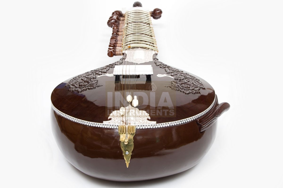 Surbahars werden oft so groß und schwer gebaut, dass sie nur mit großer Mühe zu halten und zu spielen sind. Solch überdimensionierte Instrumente schrecken viele ab, die den tiefen, meditativen Klang eigentlich attraktiv finden. Der große Innovator Hiren Roy hat in der 2. Hälfte des 20 Jahrhunderts gezeigt, dass es auch anders geht. Seine Surbahars ähneln baulich seinen Sitars und sind so dimensioniert, dass sie sich relativ leicht halten und spielen lassen. Trotz der vergleichsweise handlichen Größe entfalten sie aber den typischen kraftvollen und majestätischen Surbaharklang. P. & Brothers baut heute Surbahars in genau diesem Stil. Wunderbar für alle, die mit Sitar schon vertraut sind und jetzt mehr in die Tiefe gehen möchten.