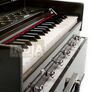 - drei Registerzüge für getrenntes oder gemeinsames Anspielen von mittlerem und tiefem Register