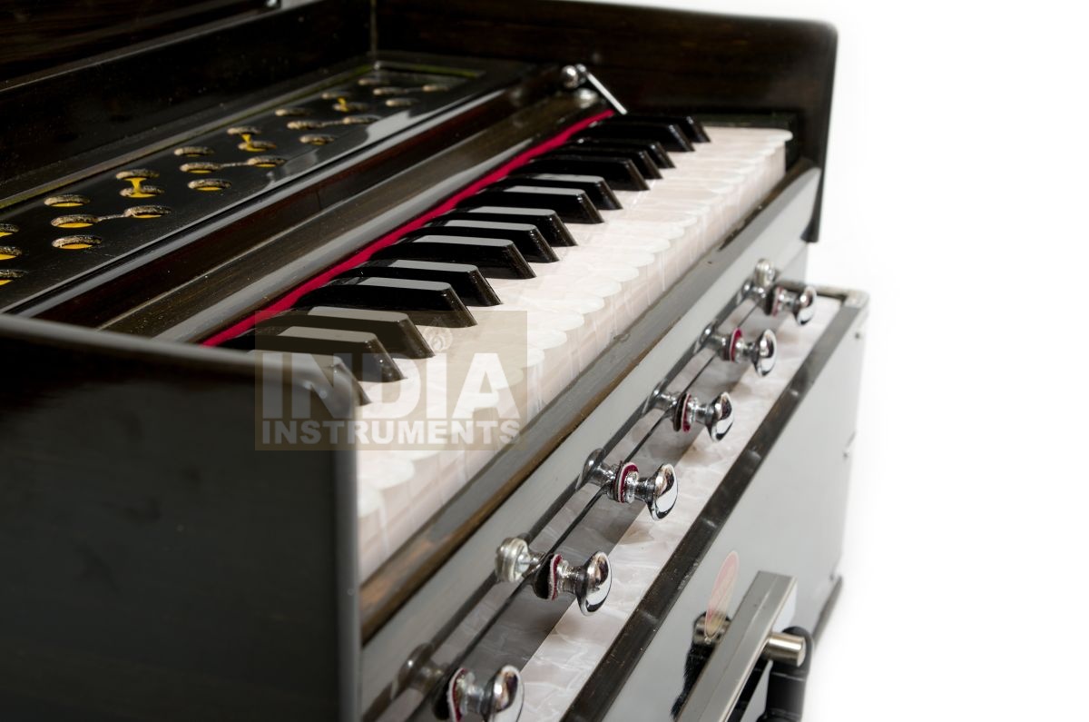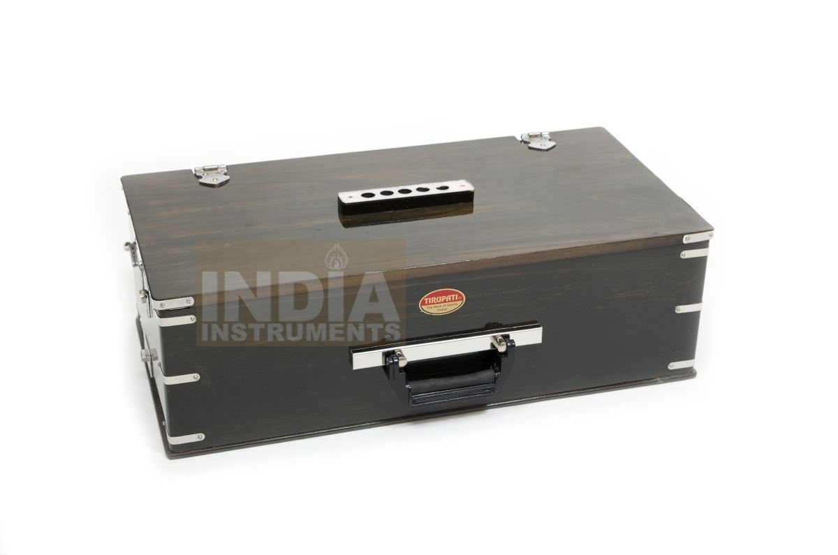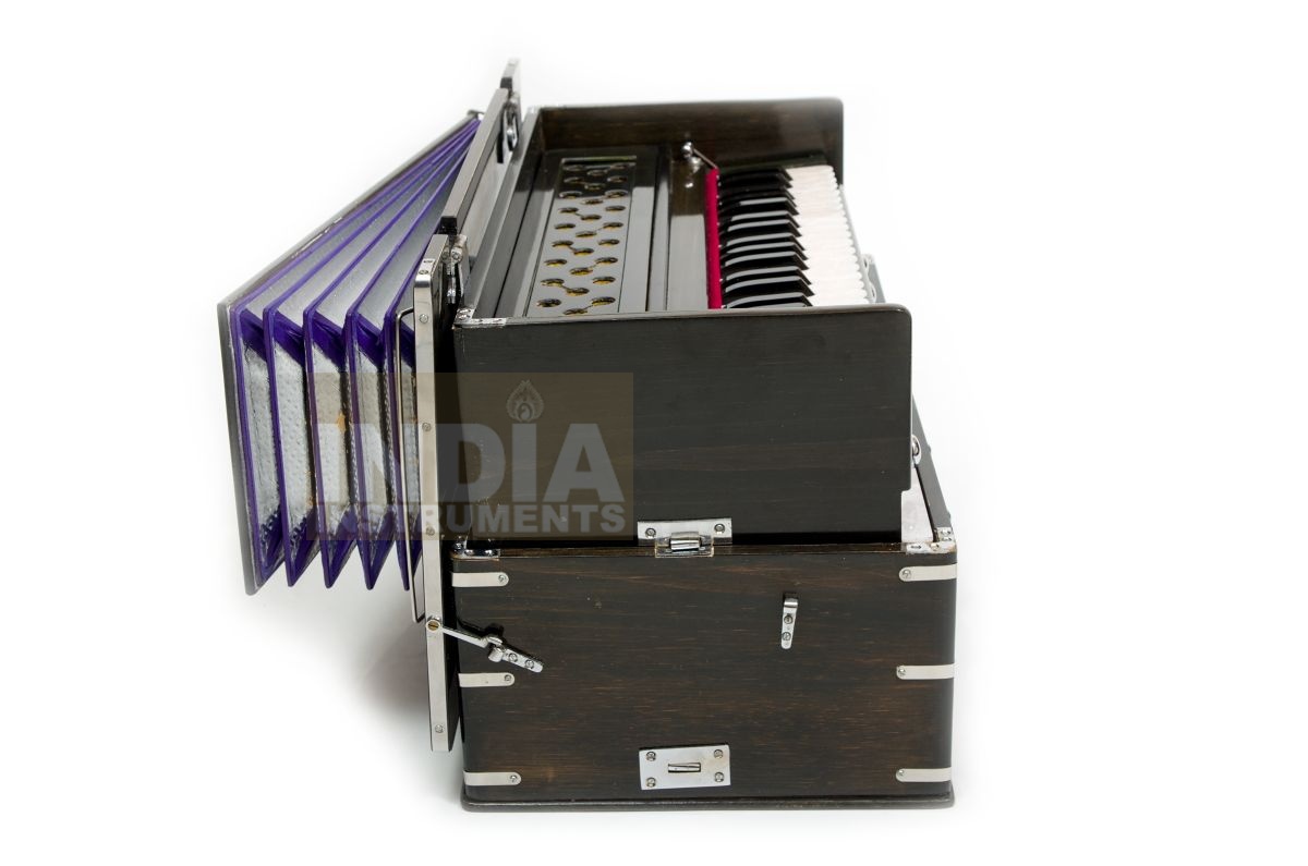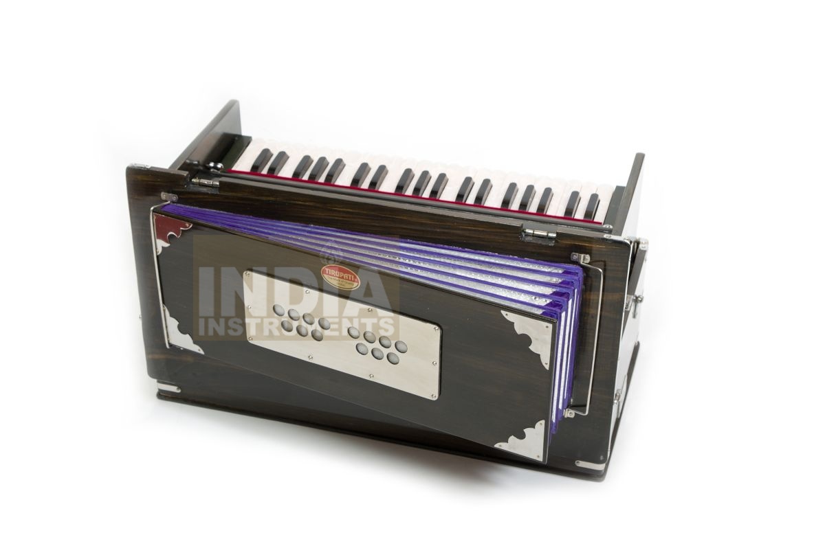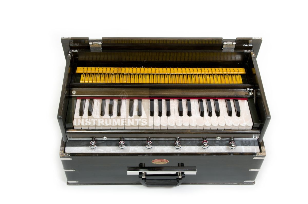 Die Bauart mit umklappbarem Balg, Koffergehäuse, Doppelzungen und einfachen Stabtasten ist dank Krishna Das oder Jai Uttal ein Klassiker in der westlichen Kirtanszene. Die Einfachheit macht es ebenso preiswert wie robust. Doppelzungen, Oktavkopplung und drei Borduntöne sorgen für vollen, brillanten Klang. Und dank des umklappbaren Balgs lässt es sich so kompakt zusammenlegen, dass man es noch gut einhändig tragen kann.