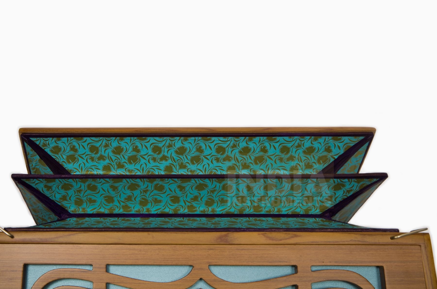 - dreiseitig umlaufende Intarsienleiste am Boden des Gehäuses