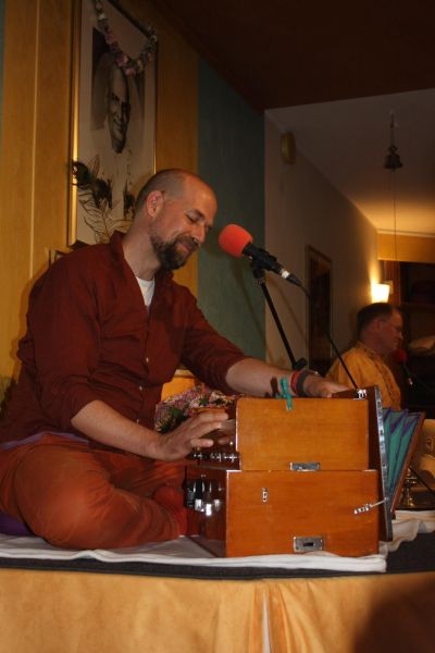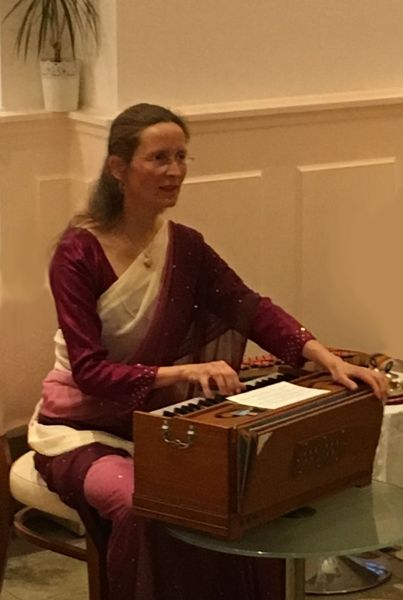 Die Sängerin und Songpoetin macht sich seit vielen Jahren einen Namen in der Berliner Kirtanszene. Ursprünglich in Gesang ,Tanz, Schauspiel und Klavierspielen ausgebildet begann sie nach langjähriger Bühnenerfahrung , inspiriert durch die Begegnung mit indischen Meistern, Mantra-Konzerte in Kirchen und den führenden Yogazentren Berlins zu veranstalten. Die Fähigkeiten des Harmoniumspielens gibt sie gerne in Privatstunden und Workshops weiter. Unter Anderem sehr geeignet für Schüler/innen, die lernen wollen Ihren Gesang mit einfachen Akkorden am indischen Harmonium zu begleiten.