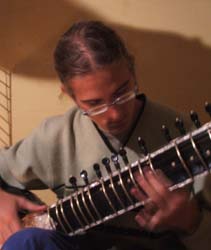 Leo Vertunni is a performing sitar player and a music professor at the Conservatory of Vicenza. He graduated from the University of Bologna in Indological studies, and gained a Master’s degree in Music Performance at the SOAS University of London. He studied for several years with Avaneendra Sheoikar, and is currently learning from Irshad Khan”.