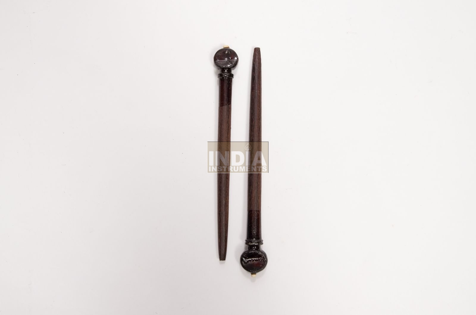 Unsere Wirbelrohlinge für indische Saiteninstrumente sind in einem Stück aus indischen Harthölzern gefertigt. Sie bestehen aus einem konisch zulaufenden Stab, der in den Instrumentenkörper gesteckt wird und einem breiten Wirbelkopf, an dem der Wirbel gefasst und zum Stimmen bewegt werden kann. Die verschiedenen Bezeichnungen beziehen sich auf die unterschiedliche Verzierung der Wirbelköpfe: Ein Spielsaitenwirbel Spirale hat einen Wirbelkopf mit einer spiralartigen Schnitzerei und bei einem Spielsaitenwirbel Blüte ist der Wirbelkopf in Blütenform geschnitzt.