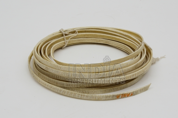 Wir führen traditionelle Rohhautriemen aus Büffelhaut. Dieses natürliche Material variiert leicht in Dicke, Breite und Dehnbarkeit. Wir prüfen es auf dünne Stellen und sichtbare Mängel. Unsere Riemen werden auf eine Länge von etwa 11 Metern zugeschnitten - ausreichend für eine Tabla oder eine Baya. Die Standardbreite beträgt 9 bis 10 mm und die Standarddicke ca. 2 mm. Andere Größen für Khol, Pakhawaj oder Mridangam können wir auf Anfrage liefern.